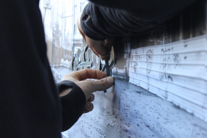 Cette création est à chaque fois renouvelée et peut s’adapter à une thématique ou un lieu. Le film réalisé, en noir et blanc, donne à voir un personnage central qui déambule au gré du scénario conçu pour l’occasion.